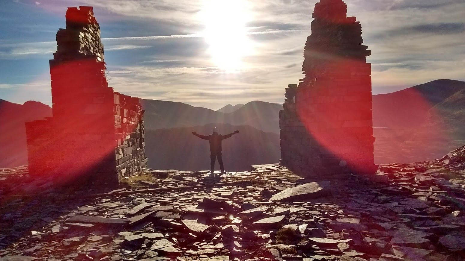 We explored the plateau and found more abandoned buildings and equipment and wide steps leading to two pillars which from a certain angle, with the sun setting, made an excellent photo opportunity.